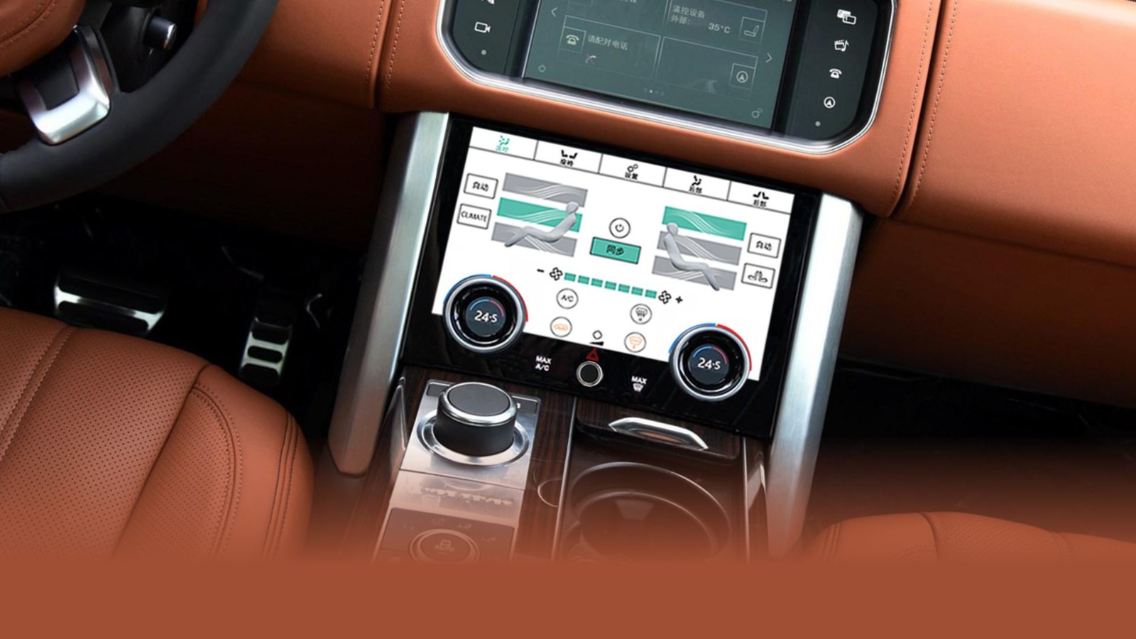 如箭頭提示攬勝新款車2021的液晶空調(diào),同時(shí)保留實(shí)體旋鈕