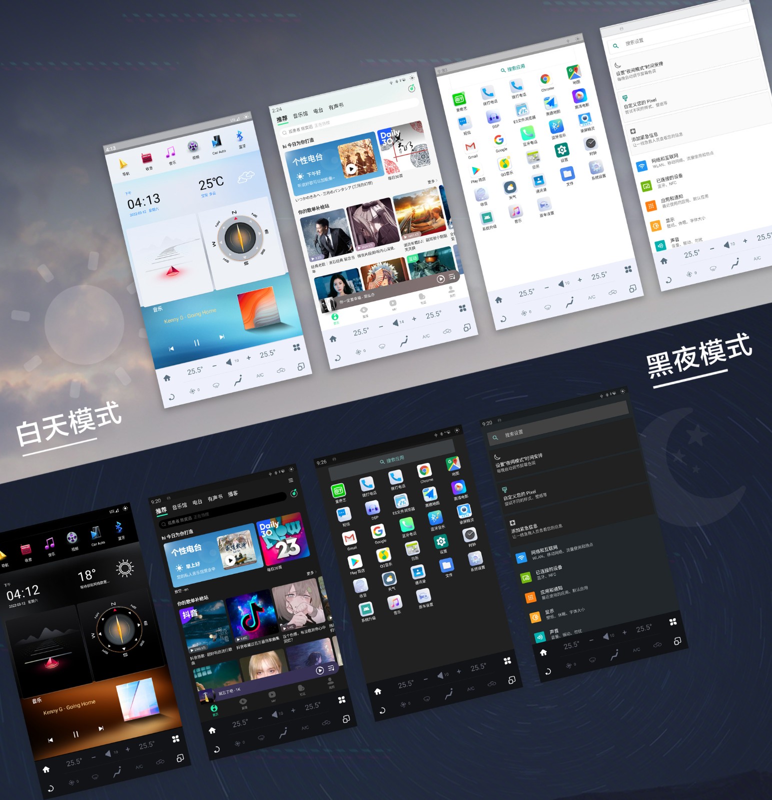 安全就在瞬間變化!通過(guò)立即/自動(dòng)隨小燈啟動(dòng)后,系統(tǒng)將自動(dòng)切換為深色主題效果界面,不再“亮瞎眼”,夜間行車(chē)更安全。注:兼容部分自帶深色模式功能的第三方APP應(yīng)用。