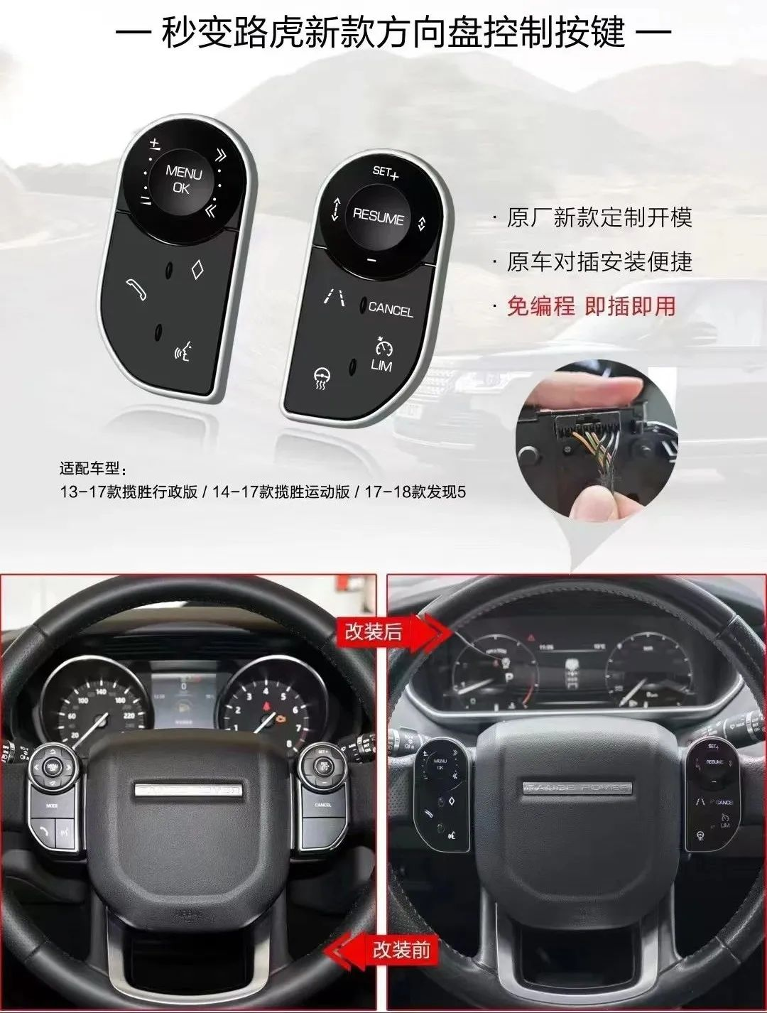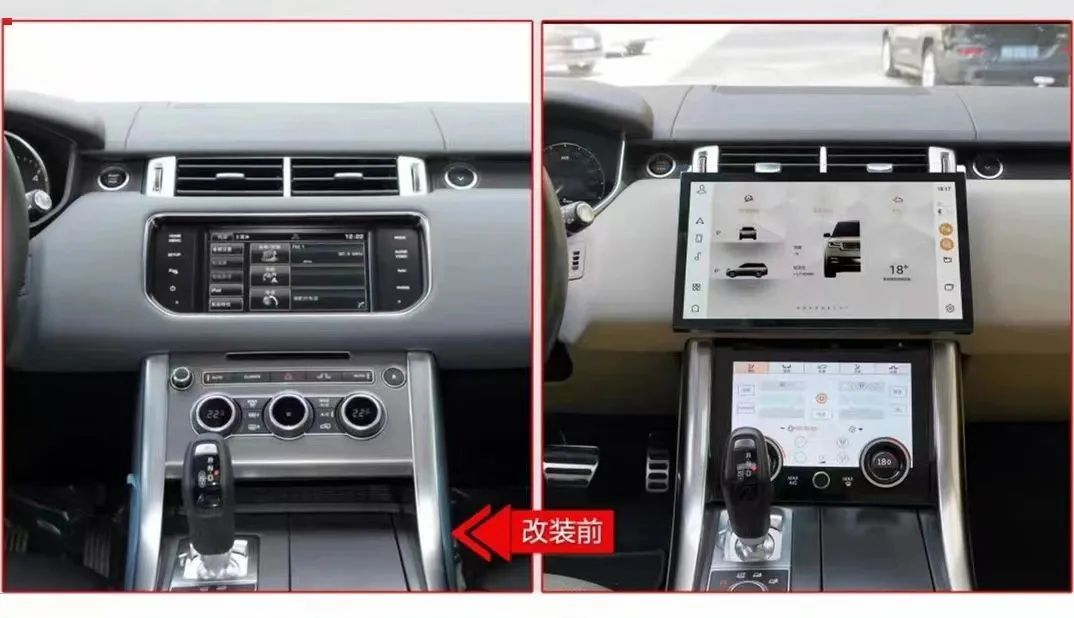 匠心打造路虎整車?yán)细男掳咐屇爿p松掌握路虎老改新財(cái)富鑰匙。路虎攬勝老改新升級(jí)一站式精品4件套——13.3寸安卓大屏+液晶空調(diào)屏+液晶方控+升窗按鍵